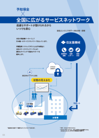 Overview of service or product | Currently, the construction industry is experiencing serious problems such as a shortage of human resources while there is a pressing need to improve productivity because of the expected rise in construction work for such as repairing established infrastructure. Sumitomo Construction Machinery has prepared various support methods from adoption to utilization that includes ICT construction, which can be used in optimal situations to help resolve these type of issues faced by the industry. We support initiatives for digitalization. |
