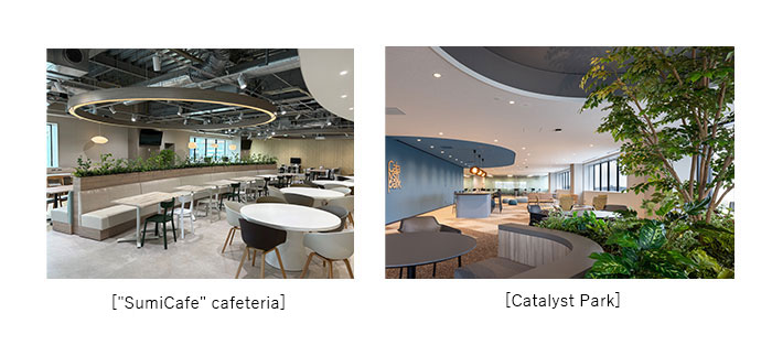 SHI outfitted the Facility with a number of "forums" that include "Sumicafe," a cafeteria that can be used to either work or take a break; an event hall that is perfect for hosting large-scale events or recreational activities; and "Catalyst Park," a reception hall that also adds stimulus to daily operations and communication.