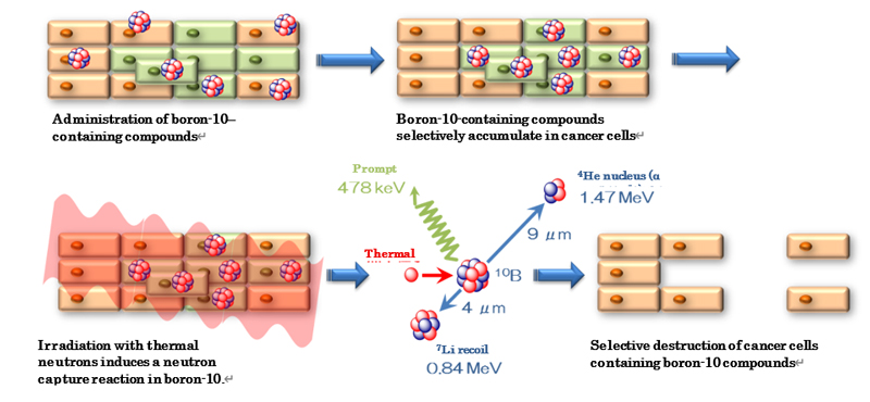 Due to these characteristics, there is theoretically almost no damage to the surrounding normal cells and other structures, and this enables selective destruction at the cell level of the cancer cells that have taken up boron-10.