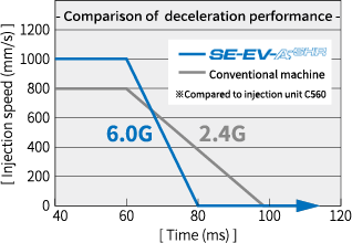 Since the deceleration capabilities are also similarly improved, it is possible to maintain high fill speeds until right before the target position. This helps minimize molding defects seen in thin-walled molding.
