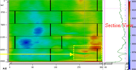 圧力容器や鋼構造物の腐食減肉検査、介在物などの組織不均一部界面に水素分子が凝集し、圧延方向に平行な割れを生ずるHIC(Hydrogen Induced Cracking)などの検査が可能です。指定された範囲における全面積の探傷データを短時間に収録、評価することができます。